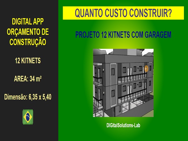 Orçamento Construção 12 Kitnets com Garagem - 36 M2