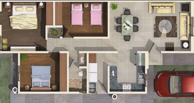 el primer piso contara con sala, comedor, cocina, 03 dormitorios + 02 baños, cuarto de estudio;