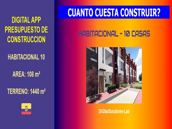 - Estimación de presupuesto de construcción de un conjunto habitacional compuesto por 10 casas, con un area promedio de 108 m², que se puede construir en un terreno de 1440 m².