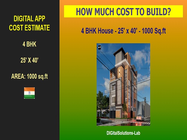 - This cost estimate presents values for a project of a 4 BHK three-story house; to be built in a 25' x 40' - 1000 sq.ft land plot.