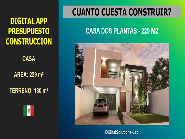 - Estimación de presupuesto de construcción de una casa de dos plantas, con un area promedio de 229 m², que se puede construir en un terreno de 10m x 18m.