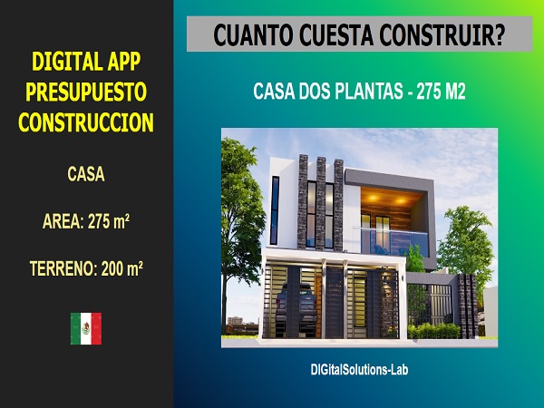 - Estimación de presupuesto de construcción de una casa de dos plantas, con un area promedio de 275 m², que se puede construir en un terreno de 10m x 20m.